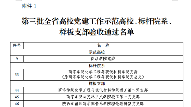 近日,陕西省委教育工委公布第三批新时代高校党建示范创建和质量创优工作培育建设单位验收结果,商洛学院党委顺利通过“全省党建工作示范高校”建设验收。学校化学工程与现代材料学院党委,化学工程与现代材料学院教工第二党支部、马克思主义学院教工第一党支部分别通过“全省党建工作标杆院系”和“全省党建工作样板支部”验收。近年来,学校党委以入选“陕西党建工作示范高校”培育创建单位为契机,将“分类指导 争先进位”活...