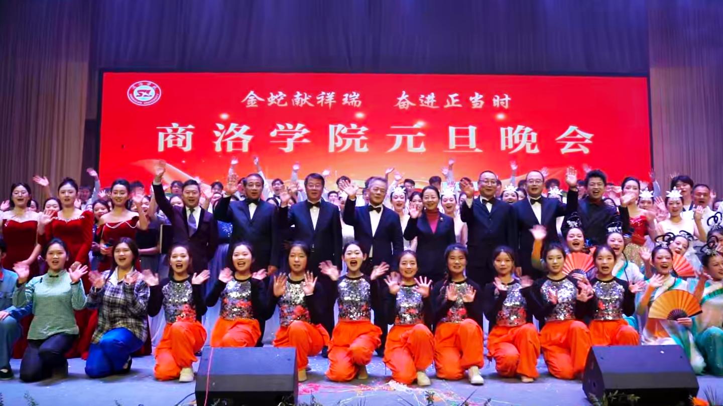 龙岁呈祥传盛事,蛇年纳福启新程。在元旦佳节即将到来之际,商洛学院举办以“金蛇献祥瑞 奋进正当时”为主题的元旦晚会。晚会于12月27日、28日晚连续演出两场。校党委书记张志昌、校长权雅宁,党委副书记、纪委书记王浩,副校长刘宝盈、王新军、郭瑾,商州区人武部上校部长陈强、中国移动商州分公司总经理张峰、国网商洛供电公司李涛等嘉宾与1000余名师生欢聚一堂,共同观看晚会。晚会在民族管弦乐曲《金蛇狂舞》热情洋溢的节奏...