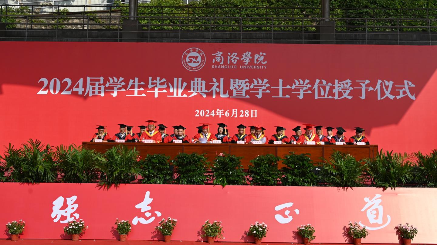 6月28日上午,我校隆重举行2024届学生毕业典礼暨学士学位授予仪式。校党委书记张志昌,副校长刘宝盈、王新军、郭瑾出席典礼。各二级院(部)党政主要负责人,学位评定委员会委员,学生处、教务处、督导与评估中心、科技处主要负责人,各学院党委副书记、学工办主任,2024届毕业班辅导员和班主任及部分毕业生家长,共同见证3428名毕业生完成大学学业,怀揣青春梦想,开启人生新征程。仪式由刘宝盈主持。典礼通过商洛学院官方微视号和抖音号全程直播。