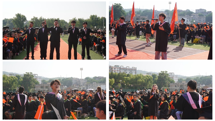 艺术学院师生为毕业生表演了《追梦赤子心》等富有青春热情、饱含留恋不舍的暖场歌曲。