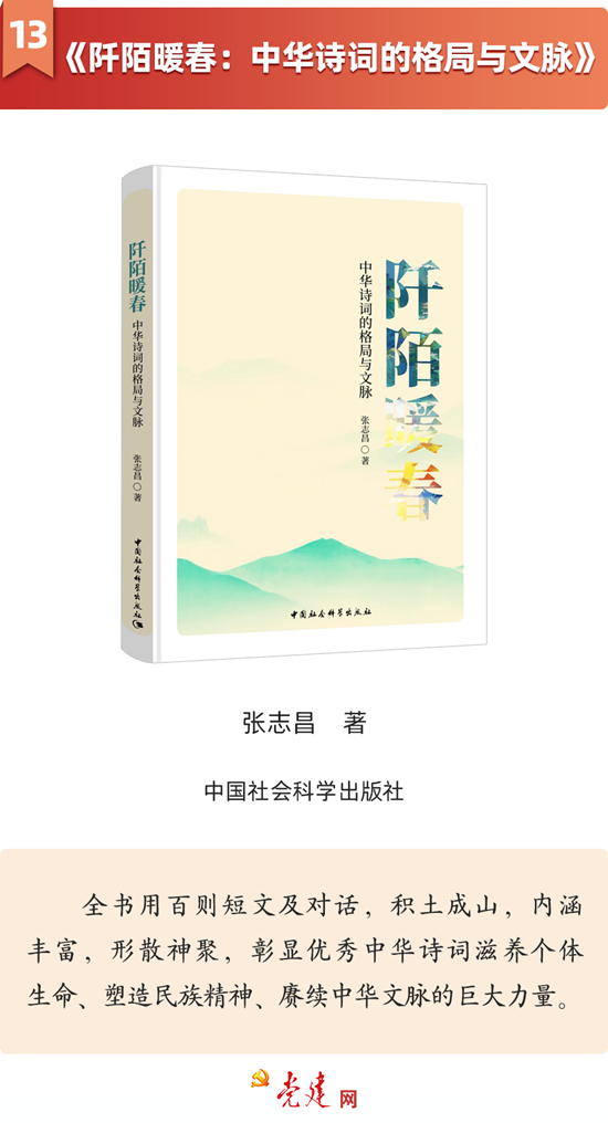 12月20日,中宣部“党建网微平台”发布了“党建好书│2024年12月书单”,我校党委书记张志昌教授著作《阡陌暖春:中华诗词的格局与文脉》入选党建好书推荐书单。
