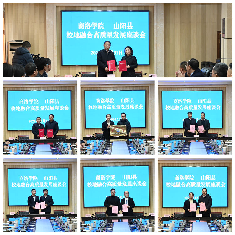 为进一步深化政产学研深度融合、政校企地合作发展,实现科学研究和服务地方水平持续快速提升,12月31日,商洛学院与山阳县共同举办校地融合高质量发展签约仪式。商洛学院校长权雅宁、副校长王新军,山阳县县长李凌云,副县长陈宏波,县委常委、统战部部长乐席波出席签约仪式。山阳县县委常委、组织部部长伍淑军主持签约仪式。