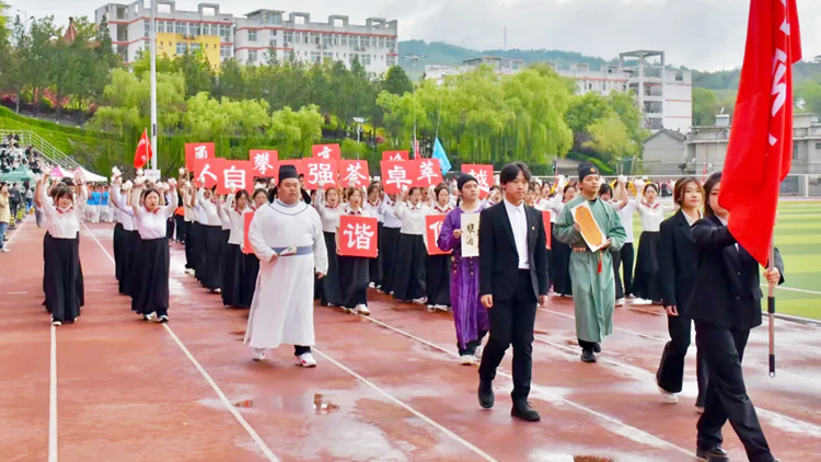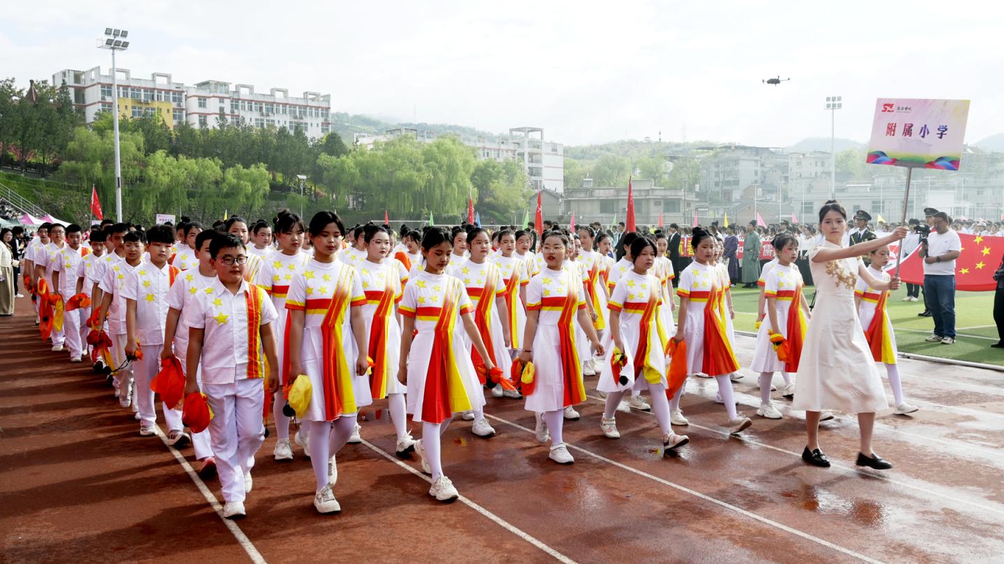 开幕式文艺展演精彩纷呈、气势恢宏。人文学院《栉风沐雨五十载龙腾狮舞谱新篇》鼓乐齐鸣、气势磅礴,抒发了师生喜迎建校50周年的真挚情怀;附属小学《纱球舞》轻盈灵动、童趣盎然,尽显青春朝气与蓬勃生机;生物学院200名学子带来《挥棍震山河 扬帆十五五》,棍法刚劲、队列整齐,秦风古韵与时代风采交相辉映;教育科学学院、艺术学院联袂献上《春逢盛世 共赴新程》,舞姿优美、歌声嘹亮,礼赞新时代、奋进新征程。整场展演融传统文化与时代气息、体育精神与校园文化于一体,赢得全场阵阵掌声。