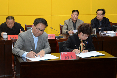 龙治刚与职能部门及教学院(部)负责人代表签订了党风廉政建设工作、稳定安全工作、意识形态工作责任书。范新会与二级单位负责人代表签订了2017年度目标考核责任书。