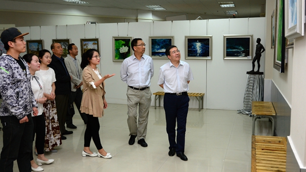 报告会结束后,在龙治刚的陪同下,任宗哲教授参观了我校红色文化资料馆、商洛文化暨贾平凹研究中心和艺术展厅等处。