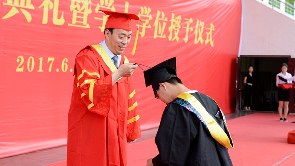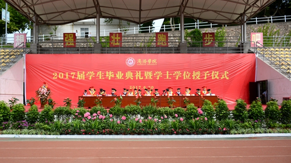 6月30日,我校隆重举行2017届学生毕业典礼暨学士学位授予仪式。校领导龙治刚、范新会、王思怀、魏书堂、彭虎军、刘宝盈、刘勇出席典礼。各院(部)党政主要负责人,校学位评定委员会委员,相关部门负责人,全体毕业生及毕业班辅导员、班主任参加典礼。典礼由党委副书记彭虎军主持。