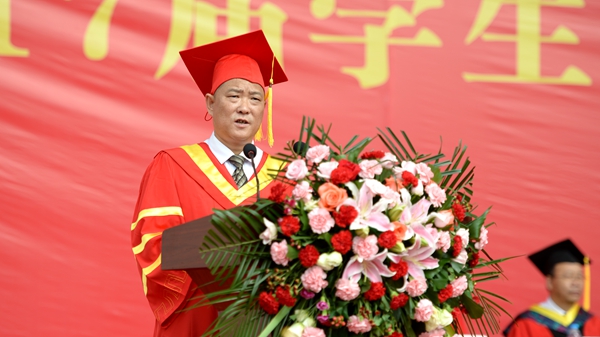 校长范新会以《永远与母校共同成长和发展》为题发表了情真意切的讲话,对即将步入社会的毕业生表达了最真挚的祝福。他深情地说,大学四年生活是人生中一段抹不去的记忆,是人生经历中不可多得的阅历与财富,同学们也是学校历史上不可或缺的重要一员!在过去的四年里,同学们在学校学习知识、增长才干、砥砺品格、收获情谊。走向社会,同学们将用学到的知识、练就的才能去开创你们未来的事业,同学们未来的成就将永远是学校的骄傲和财富。