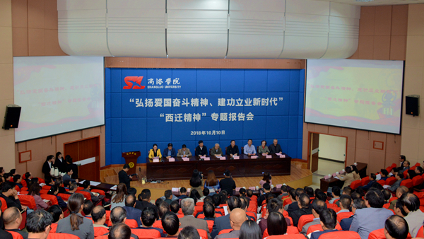 10月10日,由省委高教工委、省科协主办,我校承办的 “弘扬爱国奋斗精神 建功立业新时代”“西迁精神”专题报告会在我校举办。陕西省科协副主席韩开兴,商洛市委常委、市政府副市长张礼进,我校党委书记龙治刚、校长范新会、纪委书记王思怀、副校长魏书堂、党委副书记彭虎军、副校长刘宝盈、副校长刘勇出席报告会。报告会由市科协党组书记、主席董红梅主持。西迁老同志潘季教授、西迁子女金沙曼教授、青年教师张磊教授从亲历者、见证者、传承者三个不同角度,讲述西迁过往,畅谈西迁传承,共诉西迁情怀。
