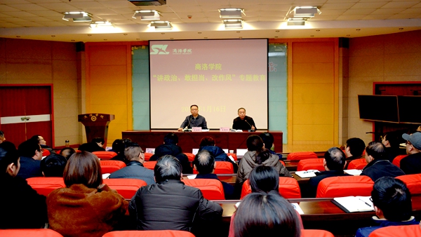 为进一步推动“讲政治、敢担当、改作风”专题教育扎实有效的开展,根据中共陕西省纪委驻教育厅纪检组的统一安排部署和中共商洛市委组织部《关于认真开展〈一抓到底正风纪〉学习讨论的通知》,1月16日,我校召开“讲政治、敢担当、改作风”专题教育学习会。