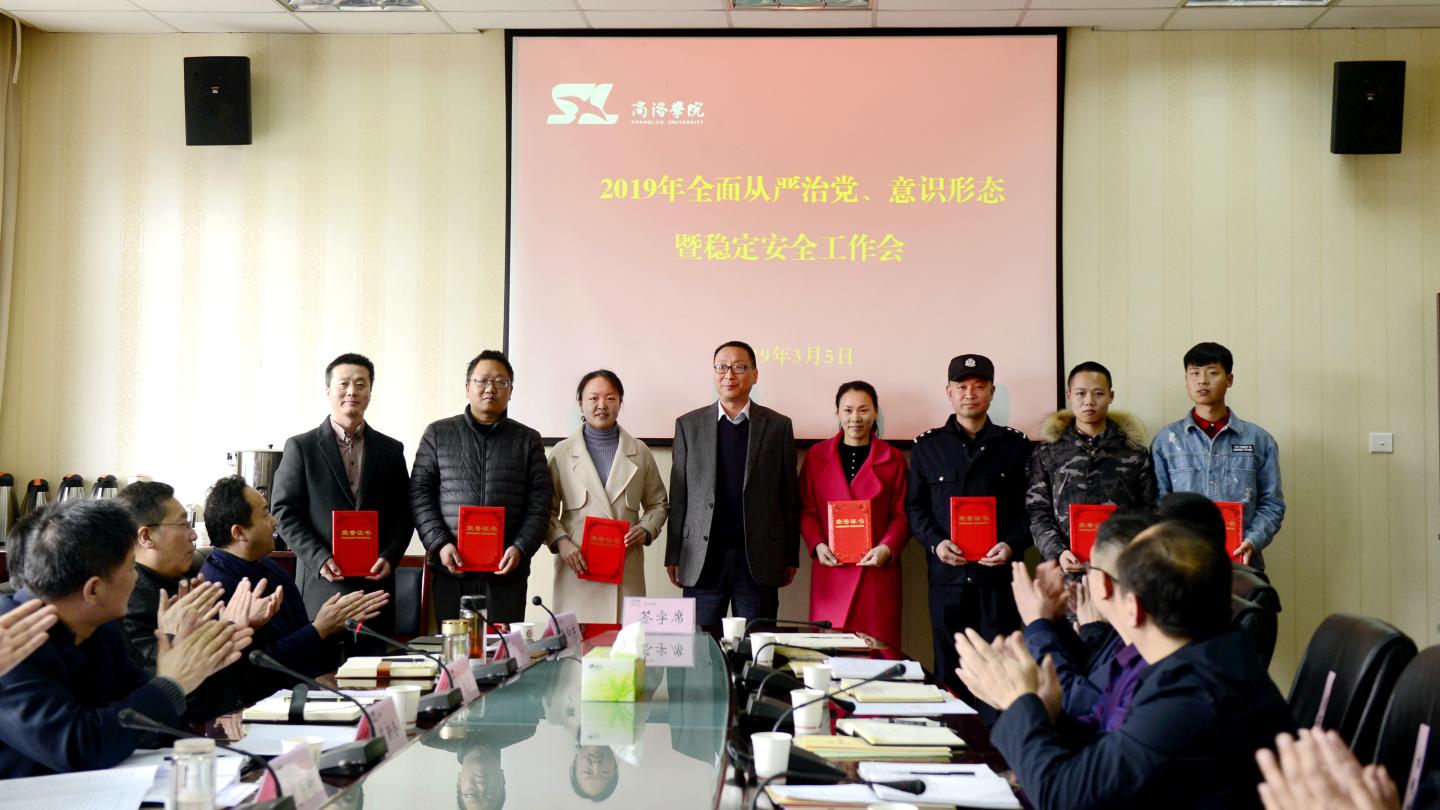 3月5日,我校召开会议,安排部署2019年全面从严治党、意识形态工作和稳定安全工作,对2018年度校园治安综合治理先进集体及个人进行表彰。党委书记龙治刚出席并讲话,党委副书记、校长范新会主持会议。党委副书记彭虎军在会上宣读了学校关于表彰2018年度校园治安综合治理先进集体、先进个人的文件,副校长魏书堂、刘宝盈分别为受到表彰的先进集体及先进个人代表颁奖。
