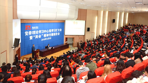龙治刚在主持时表示,高岭代表的报告既从整体上完整把握全国两会的精神内涵,又重点突出、深入浅出、亲切生动,对我校师生领会全国两会精神具有重要启迪作用。他要求全校师生,要坚持以习近平新时代中国特色社会主义思想为指导,通过多种形式认真学习贯彻落实全国两会精神,准确把握中央对发展形势的科学判断和对今年工作的部署要求,把思想和行动统一到中央决策部署上来,紧密结合学校工作实际,把全国两会精神转化为深化改革、推动发展的具体行动,为建设一流应用型本科院校做出新的贡献,以优异成绩庆祝中华人民共和国成立70周年。