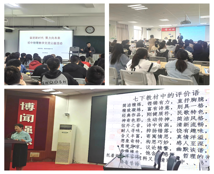 为创新教师专业成长新模式,充分发挥区域初中名优骨干教师的示范引领作用,有效促进高校与基础教育优质资源的有机融合,提升师范生教育教学实践能力水平,近日,我校与商洛市初级中学联合举办多学科教学交流公益活动,邀请商洛市初级中学省市级三级三类骨干教师团队,分别深入马克思主义学院、人文学院、数学与计算机应用学院、电子信息与电气工程学院等7个二级学院开展了20余场学科示范课、学科专题报告等活动。