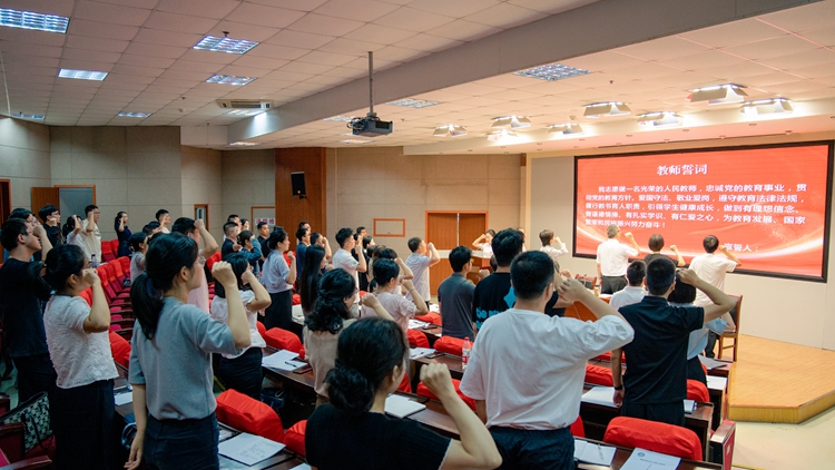 学校学科办公室、督导与评估中心、教务处、科技处、社科处、学生处、人事处等部门负责人解读了学科建设、专业认证、教学规范、科研管理、学生管理及人事管理等方面政策。在专题辅导环节,我校乔成芳教授、程国教授、刘玉婷老师、郭耀东博士分别围绕平台托举、团队带动、赛事助推、根植地方等方面为新入职教师作专题辅导。在认家联谊活动环节,校工会组织开展了教师成长团体心理沙龙、节目表演、教唱校歌等相关活动。参训教职工还学习了新时代高校教师职业行为准则、签订师德师风承诺书、开展入职宣誓,并集体参观了北新街校区和丹江校区,进一步熟悉了校园环境布局。