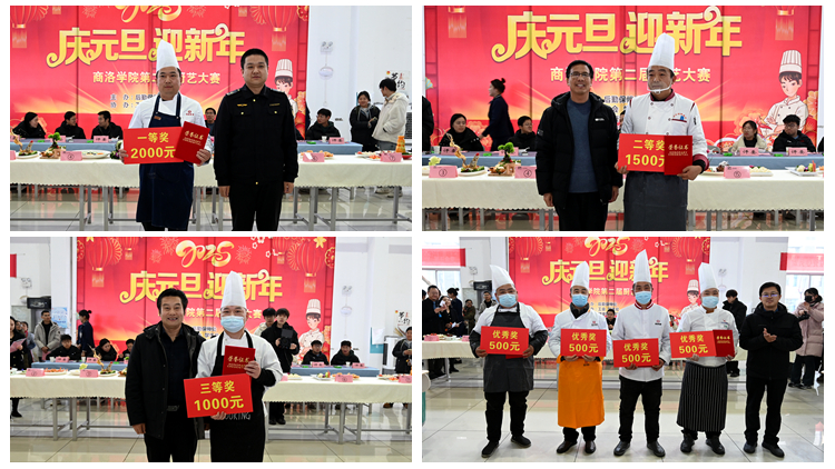 经过激烈角逐,第二学生食堂小笼包和金丝凤尾虾获得一等奖,第三学生食堂小笼包和富贵菊花鱼获得二等奖,第四学生食堂小笼包和山楂糖醋排骨获得三等奖,教工食堂小笼包和龙腾盛世、第五学生食堂小笼包和百合牛仔粒、第六学生食堂小笼包和百鸟归巢及第一学生食堂小笼包和风味羊排获得优秀奖。