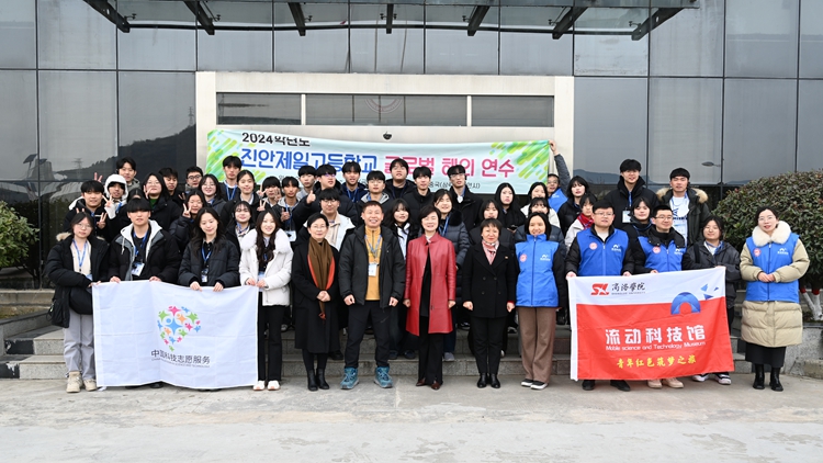 1月9日上午,韩国镇安郡(진안군)第一高等学校39名师生走进商洛学院,参观秦岭植物标本陈列室、秦岭尾矿资源陈列室,开展“发现秦岭之美”主题研学活动。
