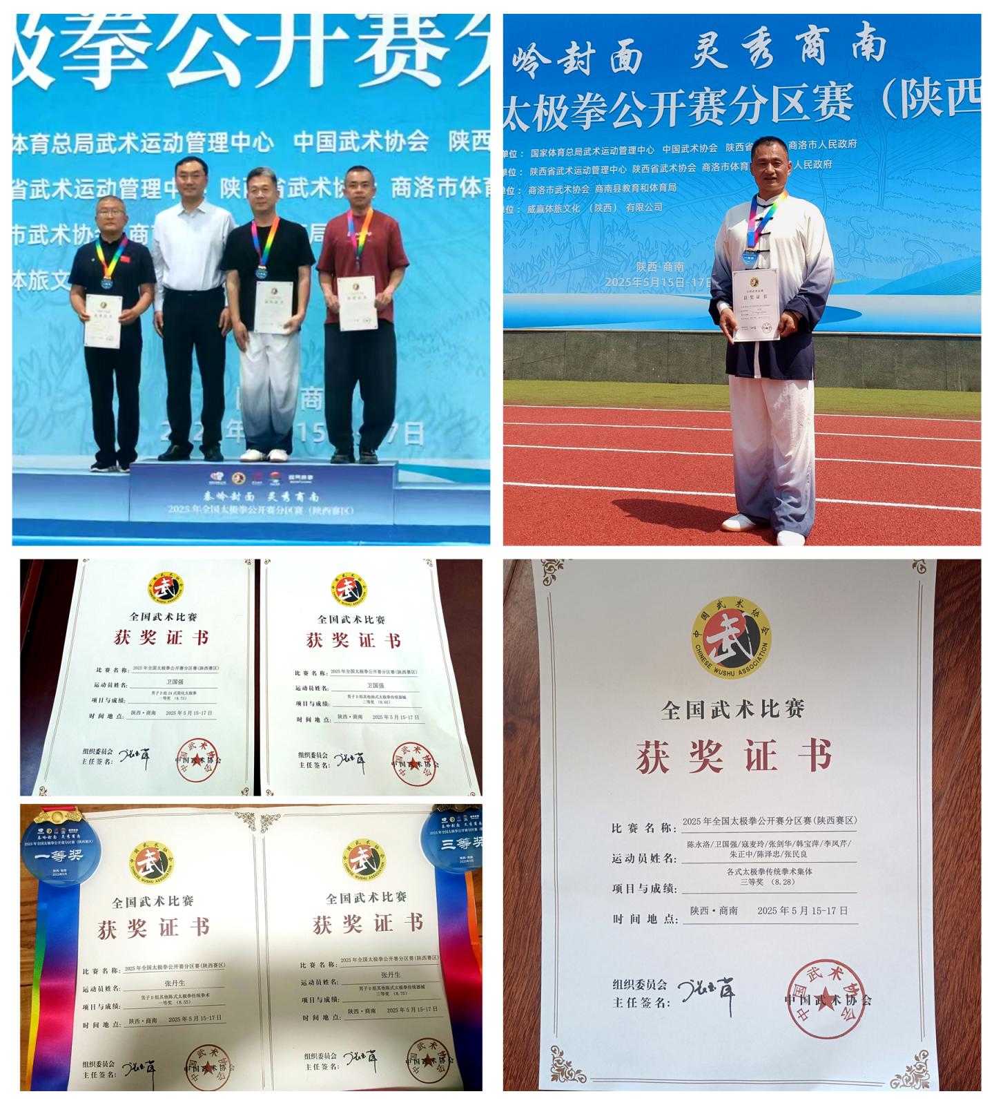 5月15日至17日,由国家体育总局武术运动管理中心、中国武术协会、陕西省体育局、商洛市人民政府主办,陕西省武术运动管理中心、陕西省武术协会、商洛市体育局、商南县人民政府承办的2025年全国太极拳公开赛分区赛(陕西赛区)在商南县体育馆举行。我校教职工张丹生、卫国强参赛并获得个人项目一等奖2项、二等奖2项、三等奖1项,集体项目三等奖1项。