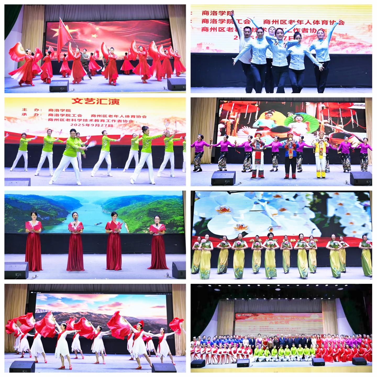 在“国庆”“中秋”双节即将来临之际,为弘扬爱国主义精神,营造节日氛围,促进校地融合发展,9月27日上午,我校联合商州区老年人体育协会、商州区老科学技术教育工作者协会共同举办了“商院家国情·双节共欢庆”主题文艺汇演。校党委副书记刘宝盈,商州区老体协主席杨会敏、副主席常会香,商州区老科协副主席王根牢,老年科技大学校长陈征民出席活动,校工会相关负责人、校内师生、老年朋友一同观看了演出。