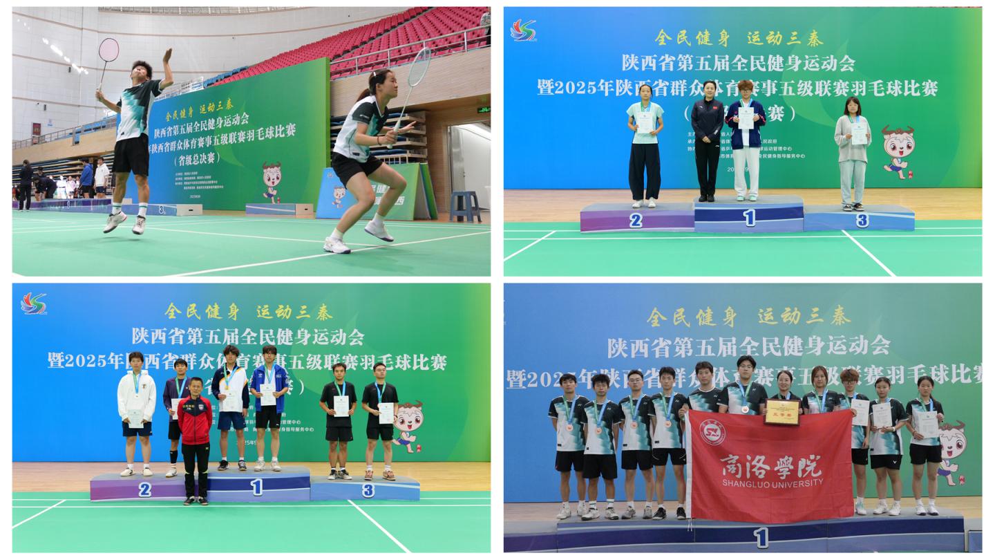 9月27日,由陕西省人民政府主办,陕西省体育局、商洛市人民政府承办,陕西省乒羽网运动管理中心、商洛市体育局、商洛市全民健身服务指导中心协办的陕西省第五届全民健身运动会羽毛球省级总决赛在商洛市体育馆圆满落幕。历经五天的激烈角逐,我校荣获大学生组团体第三名,并在单项赛中获金奖1项、银奖2项、铜奖3项。