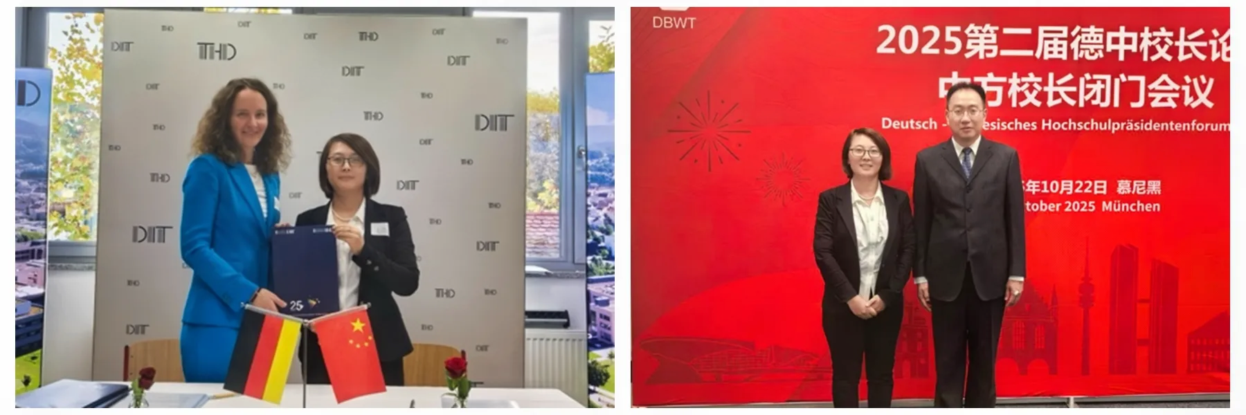 10月20日至23日,由教育部学校规划建设发展中心组织,中德产学研用创新联合体等单位共同主办的“2025年中德校长论坛”在德国举办。中国教育部、德国巴伐利亚州科学艺术部和中德两国10余所应用型高校受邀参加此次论坛。受学校委派,我校化学工程与现代材料学院党委书记乔成芳、健康管理学院院长郭耀东参加论坛并开展相关活动。
