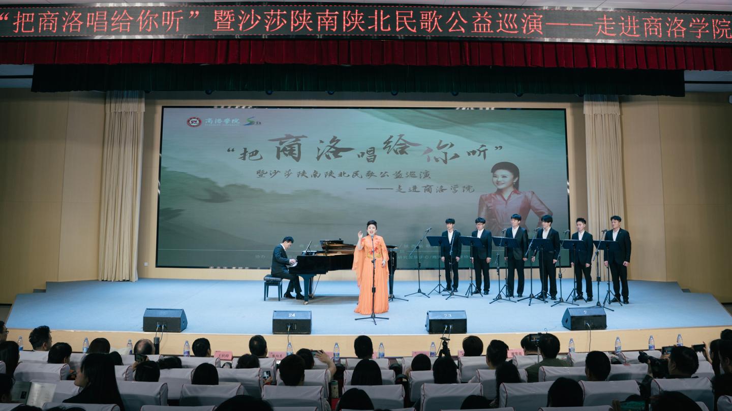 4月28日,“把商洛唱给你听”暨沙莎陕南陕北民歌公益巡演走进商洛学院,一级演员、省政协委员、陕西省歌舞剧院女高音歌唱家沙莎,男高音歌唱家、中国著名声乐教育家、中国人民解放军艺术学院特聘教授晁浩建领衔,以民歌大讲堂与专场音乐会的形式,为商洛学院师生带来一场兼具艺术感染力与文化传承价值的视听盛宴。校党委书记井浩,校长权雅宁,副校长张向东、程敏,商洛市文化和旅游局副局长王秋峰,陕西省名人协会副会长、商洛市文化产业协会会长董发亮出席活动,与相关职能部门负责人、艺术学院师生及商洛市文艺界人士共400余人一同观看演出。