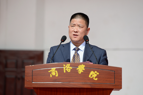 范新会在致辞中指出,体育是文明的标志,学校体育是实施素质教育,培养中国特色社会主义事业合格建设者和接班人的具体行动。一年来,我校认真实施《普通高等学校体育课程指导纲要》,加强体育教学工作。不断加强体育师资队伍建设,加大经费投入,加强体育活动组织,积极推动校园阳光体育和全民健身的开展,当前校园内已经形成浓厚的校园体育锻炼氛围。本届运动会是我校在进入“稳基、提质、增速,创新驱动发展”之际举行的一次体育盛会,也是学校在全面进入本科教育阶段的第一次运动会。运动会的召开,既是对我校一年来体育教学工作的一次大检阅,也是对我校师生精神面貌和身体素质的一次大检阅,更是我校师生运动专长及运动风采的一次大比武,必将对进一步宣传、普及和弘扬体育运动精神,激励师生以更加奋发向上的精神状态投身于教学、科技与创新、管理与服务等各项工作,推动学校各项事业可持续发展,起到积极的促进作用。他希望广大师生员工积极参加全民健身活动,成为阳光体育运动实践者和骨干先锋,也希望广大参赛运动员尊重裁判、尊重对手、尊重观众,赛出精神文明建设的丰硕成果,赛出运动训练的竞技水平。
