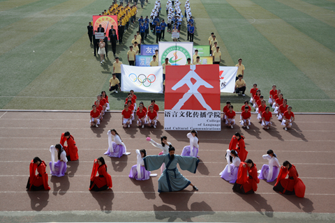 本次开幕式亮点颇多,异彩纷呈。文传院代表队的汉服舞《庄周梦蝶》以“力”与“柔”的完美结合为充满激情的运动场增添了柔美的色彩。化材学院利用26个字母和化学反应变色打出了“化材学院”四字,令人眼前一亮。建工院方阵变换了数字40与10并配以写有“乘风破浪四十载,追梦逐鹿十年兴”字样的横幅庆祝我校建校40周年、升本10周年。教职工方阵以歌伴舞《好日子》、民族乐器表演、书法表演等展示了书法协会、篮球协会、足球协会的风采。在大型文体表演节目当中,我校学子以队列表演、啦啦操排出了“四十”“1976-2016”等字样,庆祝建校40周年。匕首操、军体拳、水鼓舞等节目展示了我校学子的青春活力和永不言败的精神。航模协会也进行了精彩的飞行表演。