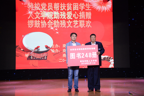 在“第26个助残日”来临之际,5月13日,人文社会科学学院与商洛市特殊教育学校联合举办了庆祝“第26个助残日”爱心联欢活动。人文学院团总支书记刘征文代表全院师生向商洛市特教学校捐赠了248册图书,同学们与特教学校的孩子们、商洛市锣鼓队等爱心组织表演了精心准备的节目。我校学生会干部在团委相关负责人的带领下参加了活动。