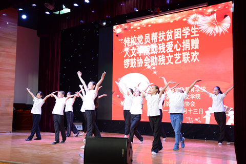 在活动中,同学们还与特教学校的孩子们、商洛市锣鼓队等爱心组织表演了精心准备的节目,其中,听障学生带来的舞蹈《鸿雁》成为本场活动的亮点,孩子们看着手语老师的指挥认真的表演,他们整齐划一的动作,表现出对美好生命的追求,深深感染了现场在坐的每一个人。