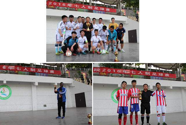 为进一步推动我校阳光体育运动,丰富校园体育文化生活,提高大学生竞技体育水平,我校举办了2016年“七人制”足球赛。本次比赛由体育教学研究部主办,团委和学生会协办,各二级学院及教工组成10支代表队共200余名运动员参赛。经过两周的激烈角逐,5月18日下午, 2016年“七人制”足球赛落下帷幕。最终,电子信息与电子工程学院获得冠军,城乡规划与建筑工程学院获得亚军,语言文化传播学院和教工队获得季军。