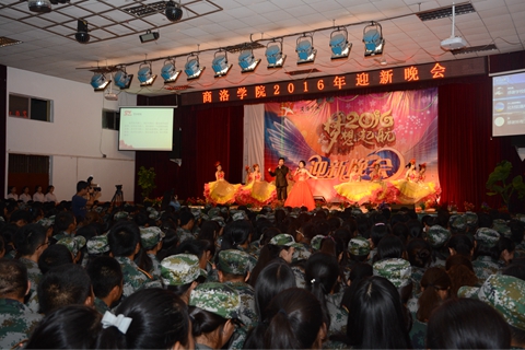 为迎接2016级新生的到来,展现我校学子风采,9月17日至19日,由校团委、学工部主办的2016年迎新晚会在我校大学生活动中心精彩上演。校领导刘建林、范新会、王思怀、魏书堂、彭虎军、刘宝盈,商洛市委常委、副市长武文罡,商洛市网信办、中国移动商洛分公司、商洛联通公司、中国邮政商洛分公司相关领导,各二级学院、各相关部门党政负责人,全体军训教官、新生辅导员与2016级学生一同观看了晚会。
