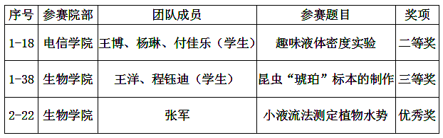 9月4日至5日,2019年陕西省科学实验展演大赛在陕西省科技资源统筹中心举办,我校电子信息与电气工程学院、生物医药与食品工程学院共派出3组师生参加大赛并分别获得二等奖、三等奖、优秀奖的好成绩。