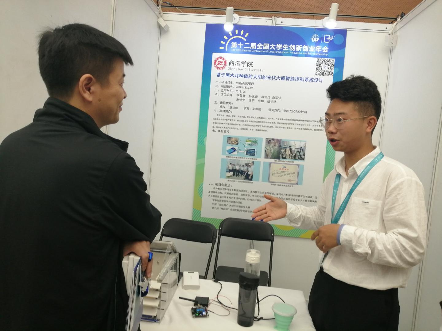 按照教育部、省教育厅有关要求,学校从6月开始筹备参赛事宜,经过校内遴选、指导打磨,教育厅层层选拔、教育部终审评定,由我校电子信息与电气工程学院教师袁训锋、杨燕指导,学生杨化俊、李娜、胡桂驰等完成的创新创业项目作品“基于黑木耳种植的太阳能光伏大棚智能控制系统设计”,最终成功入围年会展示交流项目,并在现场展示中获得与会专家和师生的广泛好评。