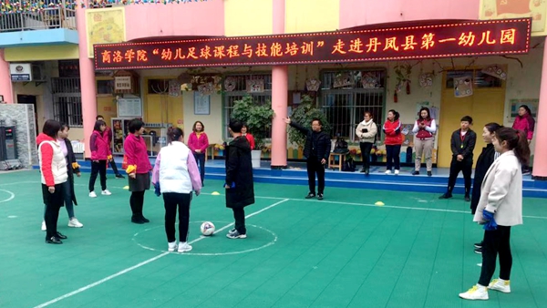 为进一步做好结对帮扶助力丹凤脱贫攻坚工作,推进丹凤县幼儿足球示范园建设,我校与丹凤县科教体局于11月20日在丹凤县第一幼儿园共同举办了“幼儿足球课程与技能培训”活动。我校“双百工程”项目首席专家朱小强,体育教学研究部足球教师杨斌,丹凤县农业农村局、科教体局相关人员,丹凤县5所示范园和5所民办幼儿园负责人及相关教师参加了此次活动。