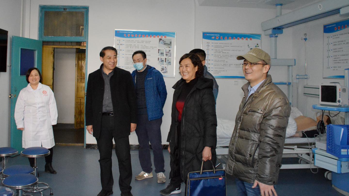 1月13日,商洛市大健康产业发展考核组来校考核2020年大健康产业发展工作。在市人大常委会社会建设工委主任杨桂英的带领下,考核组实地考察了我校养老护理实训中心和康复护理实训中心,详细了解了学校大健康产业相关工作开展情况。副校长王新军陪同考察并主持考核会。科技处、教务处、健康学院、生物学院、经管学院负责人参加考核会。