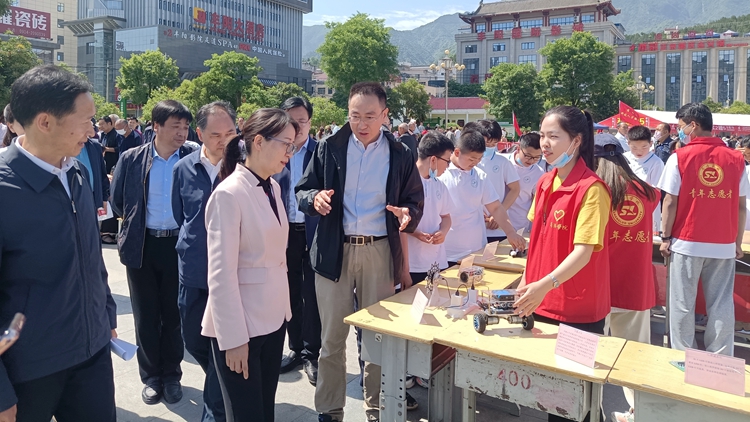 5月24日,由商洛市委宣传部、科技局及科协联合我校举办的2021年商洛市科技活动周启动仪式在山阳县人民广场举行。商洛市副市长权雅宁出席活动并讲话。商洛市委宣传部、科技局及科协,山阳县委、县政府及我校科技处负责人,省市科技特派员代表、我校“流动科技馆”成员及山阳县学生代表、社会各界群众1000余人参加了启动仪式。