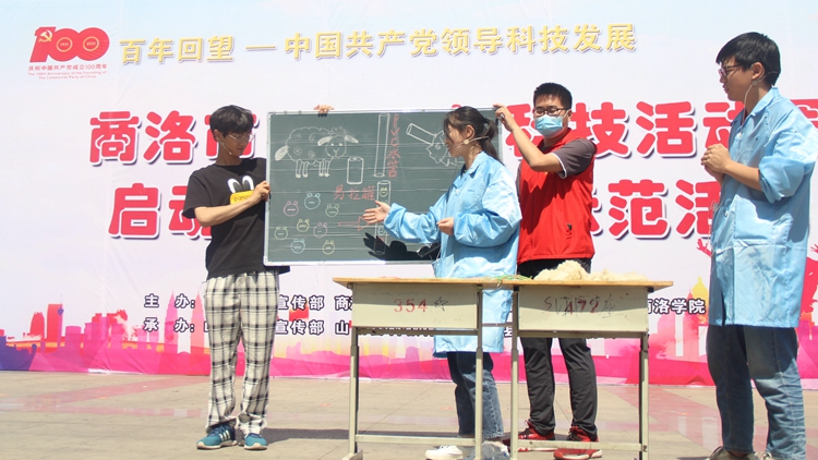 2021年科技活动周以“百年回望:中国共产党引领科技发展”为主题。启动仪式上,省市科技特派员、商洛市科技人才服务团专家为群众开展了科普宣讲、健康服务并发放了宣传资料。我校流动科技馆和商洛市科协科普大篷车通过科技创新作品展讲、科普情景剧表演、航模飞行展示、互动仪器体验等形式为山阳县城区一中与延坪镇中心学校学生进行了科普展演,启发青少年崇尚科学、探索未知的创新思维。