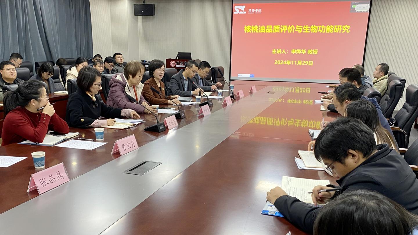 在学术交流环节,师生们就核桃油研究中的技术难点、产业应用前景等问题与申教授展开深入交流。申教授耐心解答,其渊博的学识与严谨的治学态度给师生们留下了深刻印象。