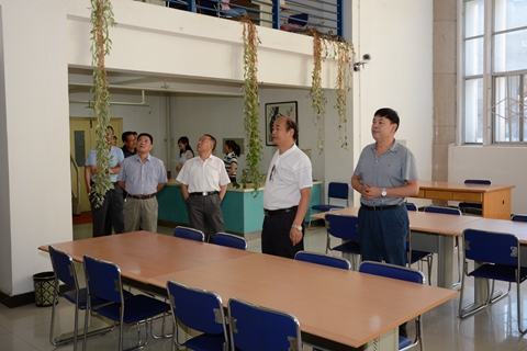 8月28日,校领导刘建林、范新会、王思怀、魏书堂、彭虎军、刘宝盈在党政办公室、教务处、基建处、资产管理处、后勤保障处负责人的陪同下,深入各教室、图书馆、体育场、食堂、学生公寓等教学活动场所,检查开学准备工作。