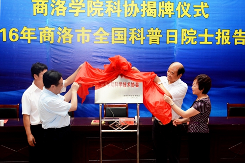 仪式上,刘建林、樊代明、宋奇志、闫彩芹共同为“商洛学院科学技术协会”揭牌。
