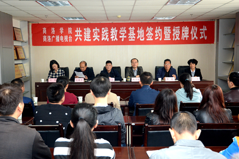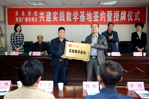 10月8日,我校与商洛广播电视台签订实践教学基地协议,校党委副书记、副校长范新会向商洛广播电视台台长巩文超授牌。授牌仪式由商洛广播电视台总编辑党银平主持。