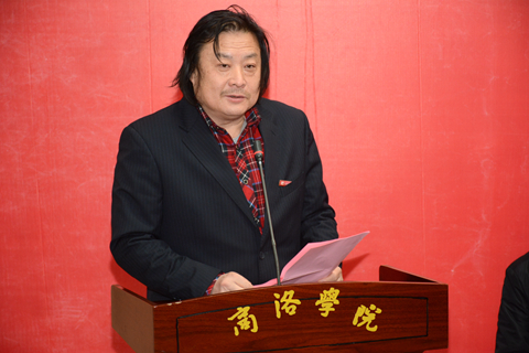 刘宝盈代表学校对省内外艺术界人士来校参加“秦岭画派”全国学术研讨会表示欢迎,向客人们介绍了商洛的区位优势、历史文化和我校的办学定位、办学特色、发展目标。刘宝盈表示,我校艺术学院师生在长期的教学研究、创作实践中凝练打造的“秦岭画派”这一艺术流派,具有鲜明的地域特色,也成为我校的办学特色之一。以刘凤林为代表的艺术家们,依托大秦岭,根植商山洛水,与校内外艺术界人士在理论与实践中大胆创新、勇于探索,创作了主题鲜明、风格独特的艺术作品,丰富和支撑着“秦岭画派”这一文化品牌。希望我校艺术学院师生抓住此次交流学习机会,开拓眼界,取长补短,创作出更多讴歌大秦岭的艺术精品。