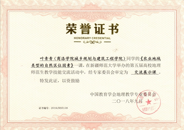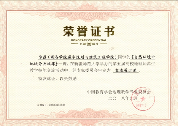 9月28—30日,由中国教育学会地理教学专业委员会主办,新疆师范大学地理科学与旅游学院、华东师范大学地理科学学院联合承办的“2018年地理师范生教学技能大赛”在新疆维吾尔自治区乌鲁木齐市成功举办。来自华东师范大学、东北师范大学、华中师范大学、南京师范大学、陕西师范大学等70多所高校地理科学(师范)专业的140余名选手参加了大赛。我校选派参赛的城乡规划与建筑工程学院地理科学专业2015级学生叶青青、李磊讲授课程均被审定为交流展示课(三等奖)。