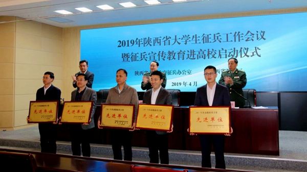 4月28日,省人民政府征兵办公室、省教育厅联合举行2019年全省大学生征兵工作会议暨征兵宣传教育进高校启动仪式。会议表彰了2018年全省高校征兵工作先进单位,包括我校在内的15所高校获此殊荣。党委副书记彭虎军代表学校在现场领受了奖牌。