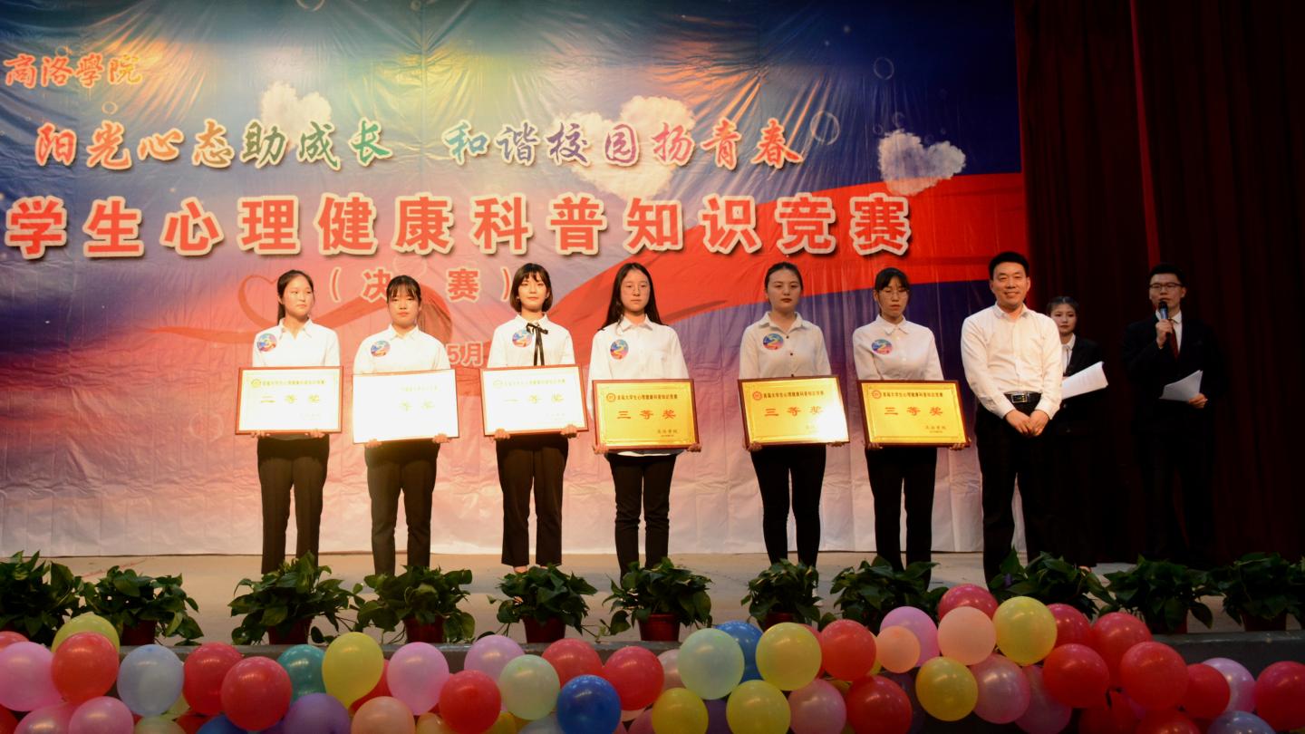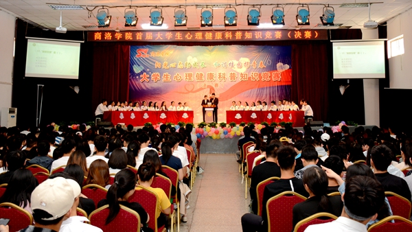 5月10日下午,我校在大学生活动中心举办首届大学生心理健康科普知识竞赛(决赛)。校党委副书记彭虎军莅临决赛现场并为优胜者颁奖。商洛职业技术学院学工部负责人与我校学工部负责人,各二级学院党总支书记、学工办主任、全体辅导员以及学生代表共计600余人一同观看了本次比赛。