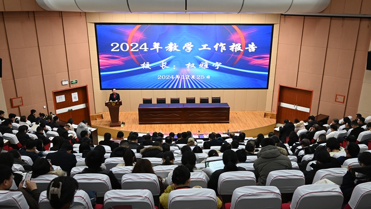 权雅宁作2024年教学工作报告,全面回顾总结了我校2024年教育教学工作成就,深入分析了学校教育教学工作面临的形势和挑战,围绕推进“三全育人”、做好本科教育教学审核评估整改、深化教育教学改革、数字赋能课堂创新、加强校园文化建设5个方面对2025年教育教学工作作了安排部署。她强调,学校需要立足新发展阶段、深化教育教学改革,从数量的扩张转变为质量的有效提升,走内涵式发展道路。要协同创新构建“三全育人”新格局,培养高素质应用型人才。要强化服务导向,有效提升教育对高质量发展的支撑力、贡献力。要科学谋划、深化改革,持续推动本科教育教学高质量发展。