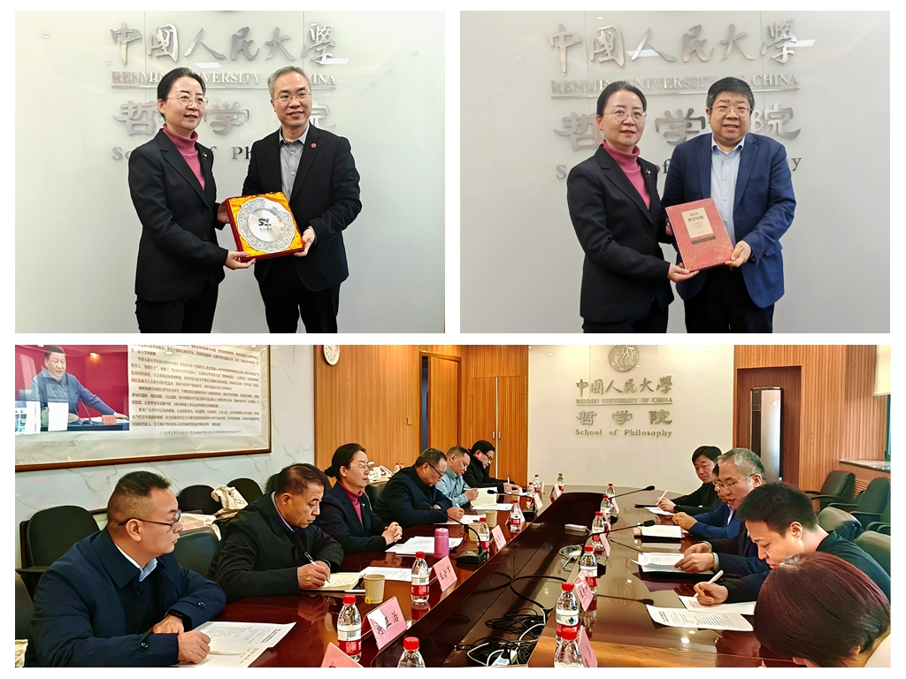 在中国人民大学,权雅宁一行与人大哲学院、国家创新研究院(筹)相关负责人进行了深入座谈交流。权雅宁介绍了商洛的地理区位和我校发展历程、办学特色、师资队伍等情况。中国人民大学哲学院党委书记石德才致辞,院长臧峰宇主持会谈。双方一致表示,将本着优势互补、共同发展的原则和携手助推中西部高等教育事业发展的目标意愿,在教师进修、科学研究、继续教育、人才培养、文化交流、共建培训基地等领域开展校际合作。