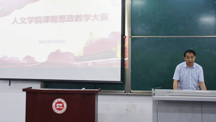 为深入贯彻落实教育部《高等学校课程思政建设指导纲要》文件精神,把思想政治教育贯穿人才培养全过程,根据教务处《关于举办商洛学院2022年课程思政讲课比赛的通知》要求,在前期各系初赛的基础上,人文学院于2022年5月25日1号教学楼多媒体4 教室举行了课程思政教学大赛院级决赛。特邀我校副校长王新军、客座教授韩鲁华、工会副主席鱼小强、督导与评估中心主任张晓倩、人文学院院长张文诺、马克思主义学院刘敦俊、经济管理学院房琳担任评委,学院全体教师及部分学生代表观摩比赛。人文学院副院长任桂婷主持比赛。