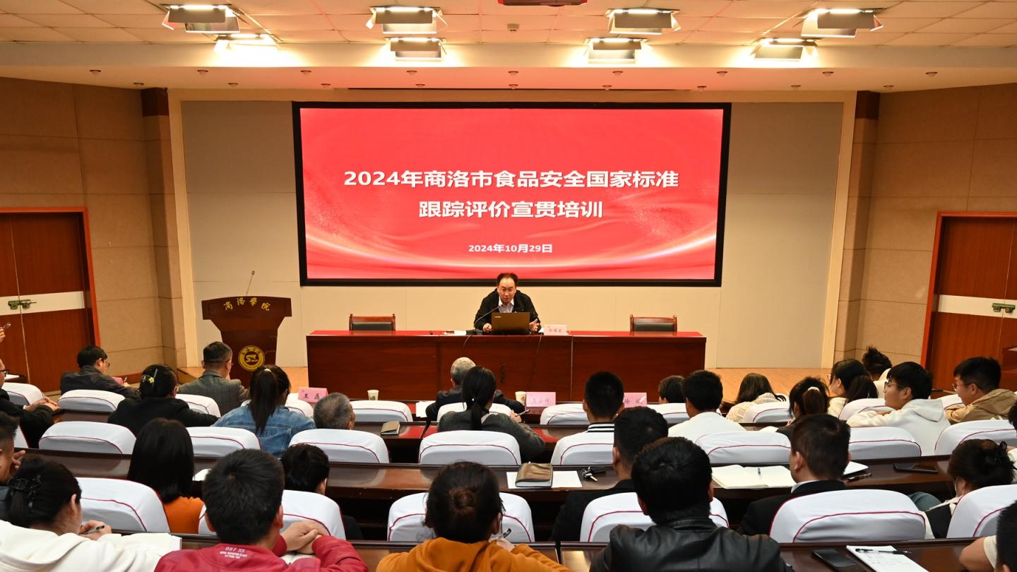 商洛市卫生健康执法支队相关领导及工作人员,商州区市场监督管理局相关工作人员,商洛市产品质量监督检验、食品安全检验检测机构相关技术人员代表,全市食品加工、流动、餐饮各环节的代表性企业技术人员代表,以及我校生物医药与食品工程学院、健康管理学院食品安全领域师生代表100余人参加培训。