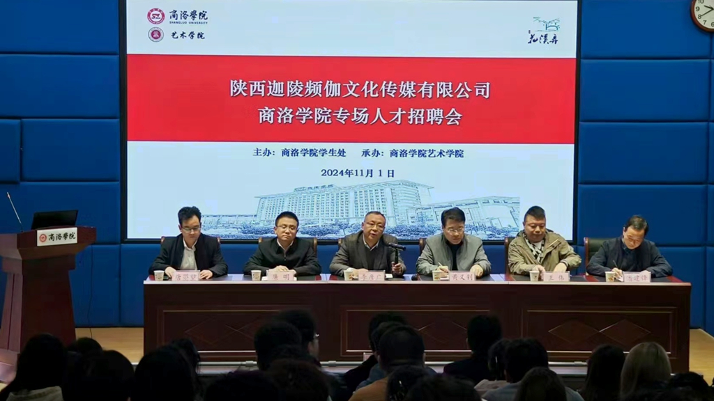 为进一步加强校企合作,打通毕业生就业和企业招才双向交流渠道,11月1日上午,花溪弄·陕西迦陵频伽文化传媒有限公司在我校举行专场招聘会。本次招聘会由学生处主办,艺术学院协办。陕西花溪弄运营有限公司董事长黄义钊、总经理王伟、行政人事总监潘建锋,学生处处长李彦广、艺术学院党委书记廉明,艺术学院全体辅导员及来自艺术学院、人文学院、经管学院200余名毕业生参加了招聘会。艺术学院党委副书记·副院长唐曌堃主持会议。