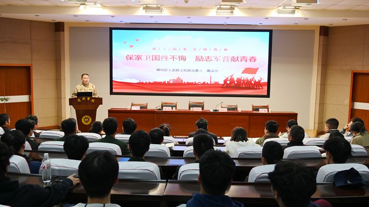 高运锋结合个人军旅生涯现身说法,以《立志参军 精忠报国》为题,从入伍优待政策、参军入伍要求、应征入伍流程三个方面就征兵工作有关政策进行了全面解读。他勉励同学们要牢固树立“保家卫国终不悔,励志军营献青春”的意志,刻苦努力、认真学习,用实际行动为“中国梦 强军梦”贡献个人力量。